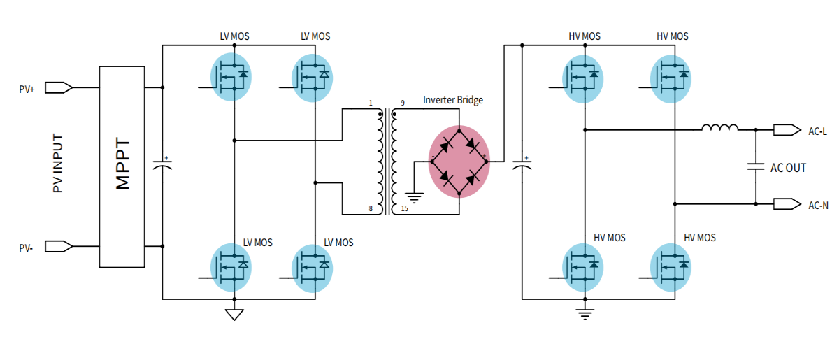 便携式储能广泛应用于应急供电、户外作业、探险、露营等。其组成包括:电池包、BMS、PD快充板、控制板、太阳能充电模块、逆变器等。逆变器将电池的低压直流通过变压器转换成交流230VAC/50Hz或110VAC/60Hz,是便携式储能的核心,具有高效率、高可靠性的特性,因此对器件的选用有严格的要求。