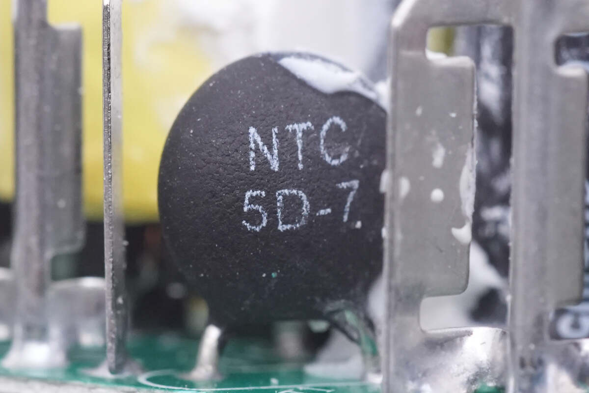 NTC热敏电阻丝印5D-7,用于抑制充电器上电的浪涌电流。