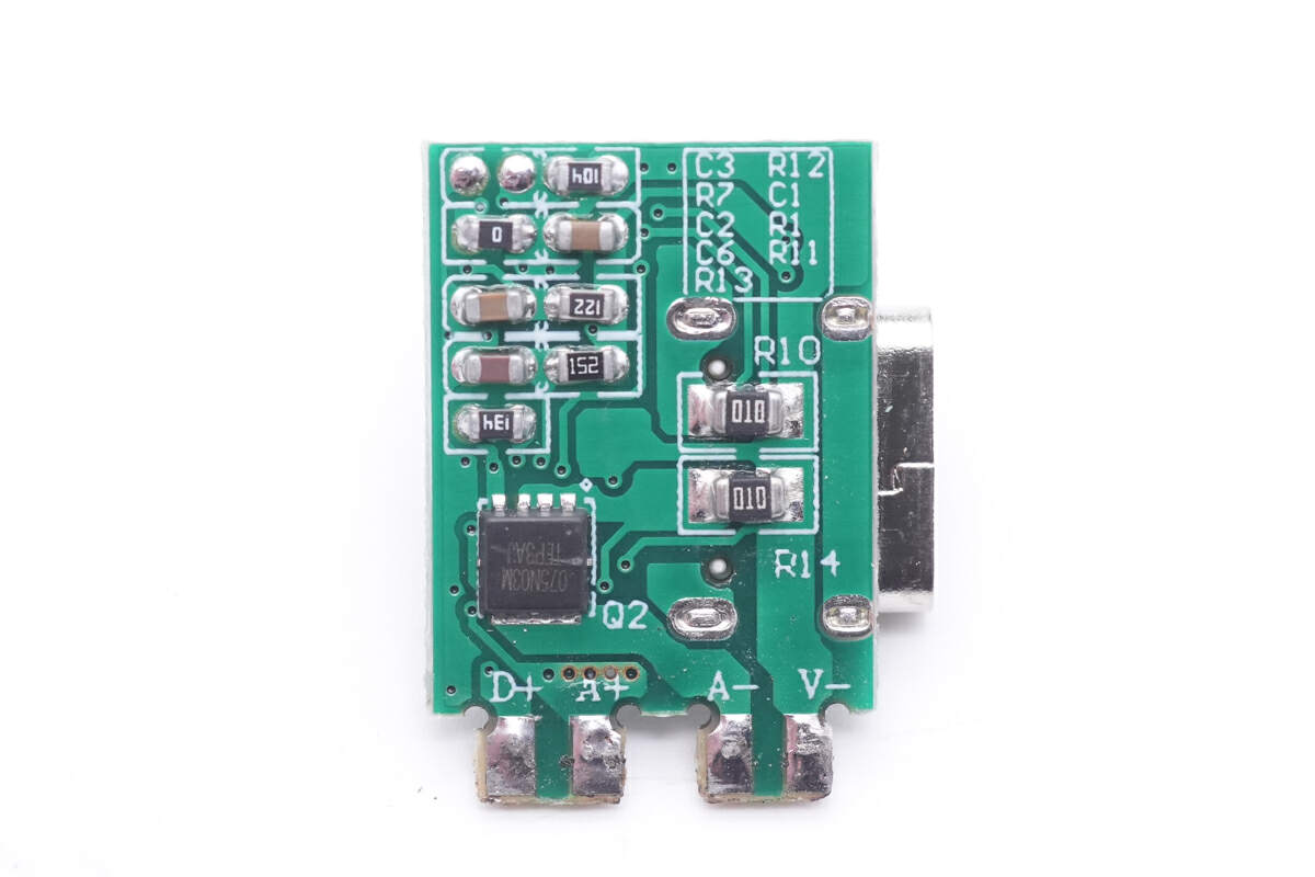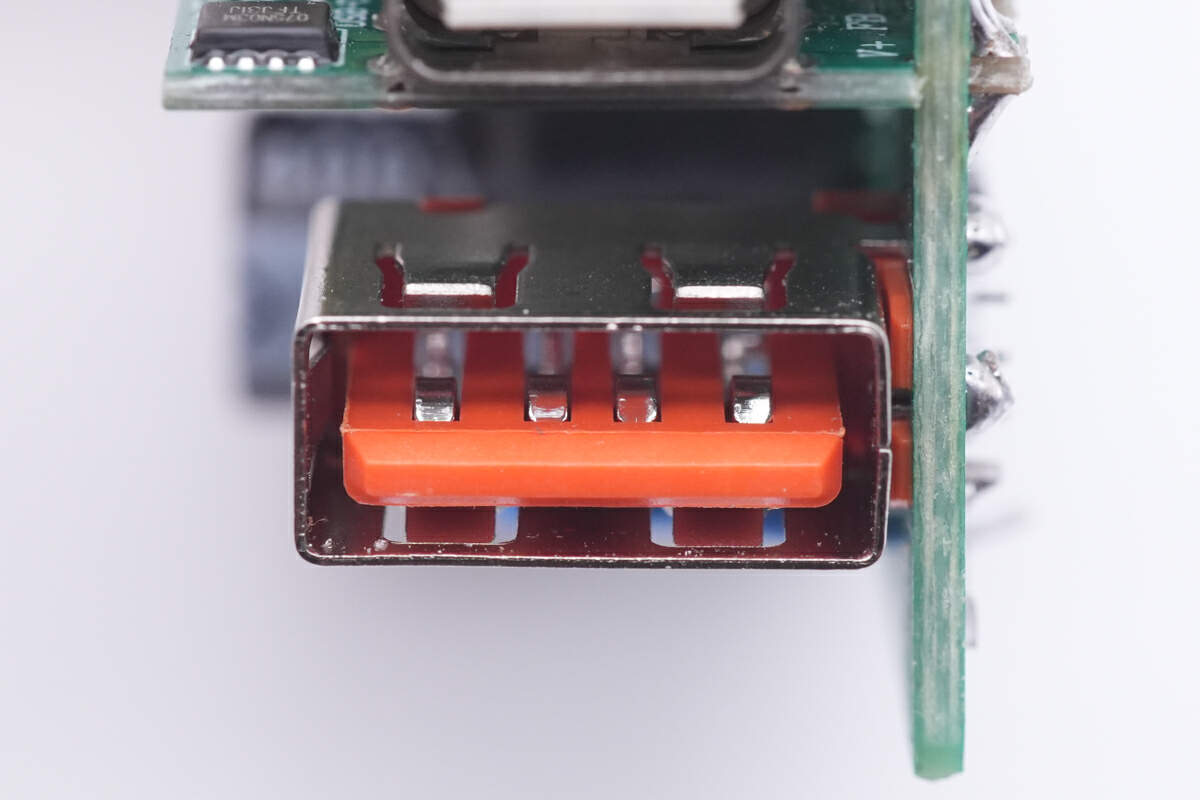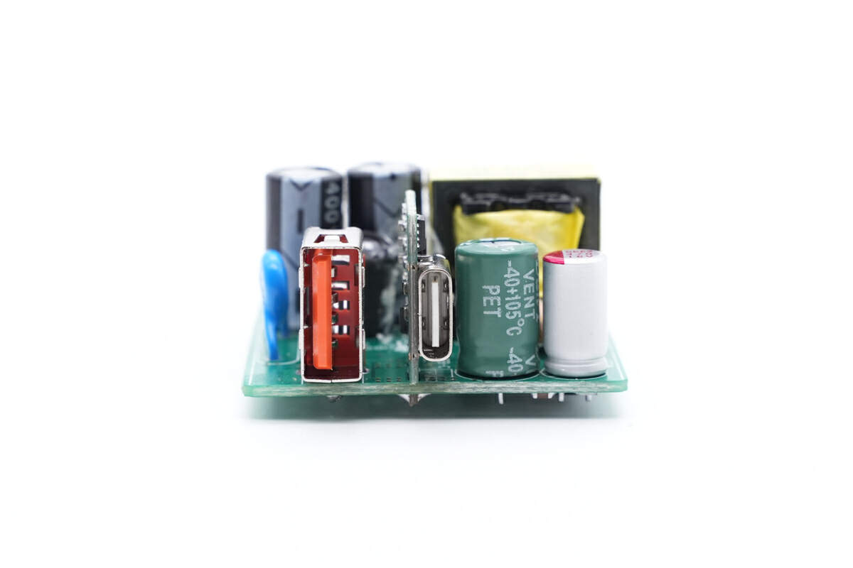 输出端焊接USB-A母座,USB-C小板,两颗滤波电容。