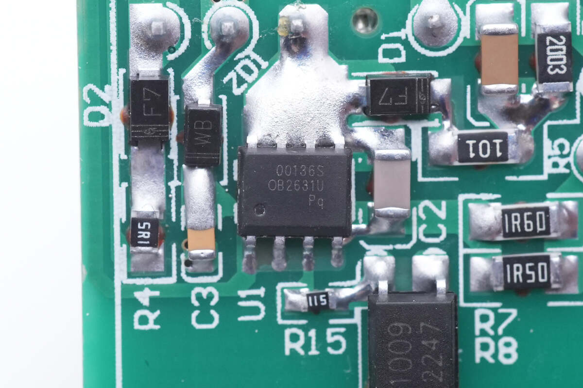 充电器主控芯片采用昂宝OB2631U,内部集成DCM PWM控制器和高压开关管,为高性能低待机功耗以及高性价比开关电源而优化。此外提供完整的保护功能,包括逐周期电流限制,过载保护,欠压闭锁和内部过热保护。适用于PD适配器和其他宽输出范围的适配器。