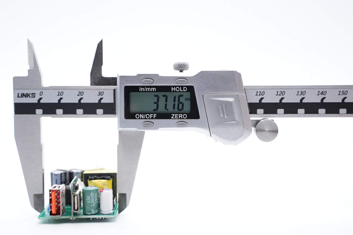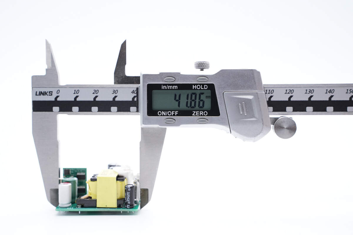使用游标卡尺测得PCBA模块长度约为41.86mm。