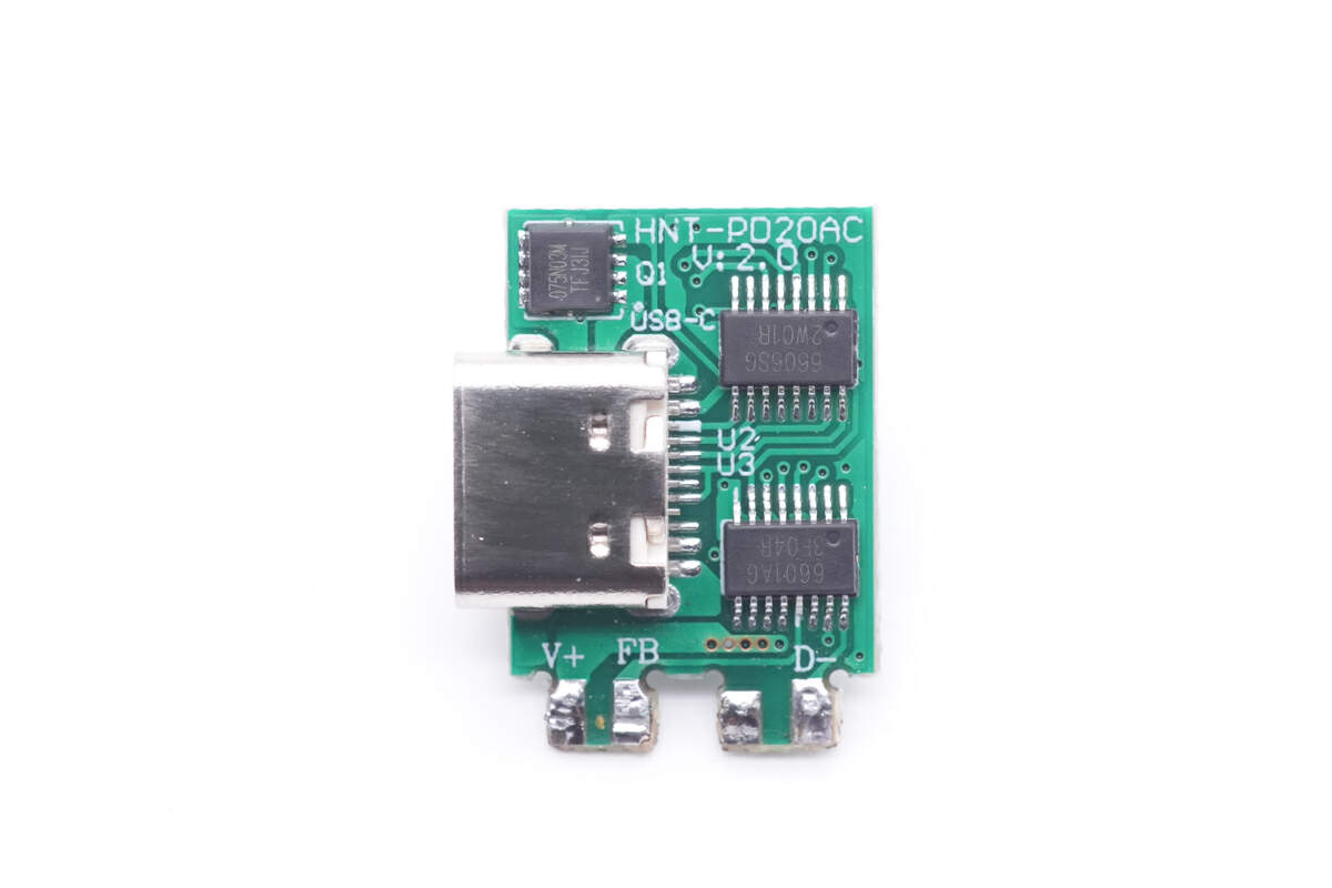 在小板上焊接两颗协议芯片,VBUS开关管和USB-C母座。
