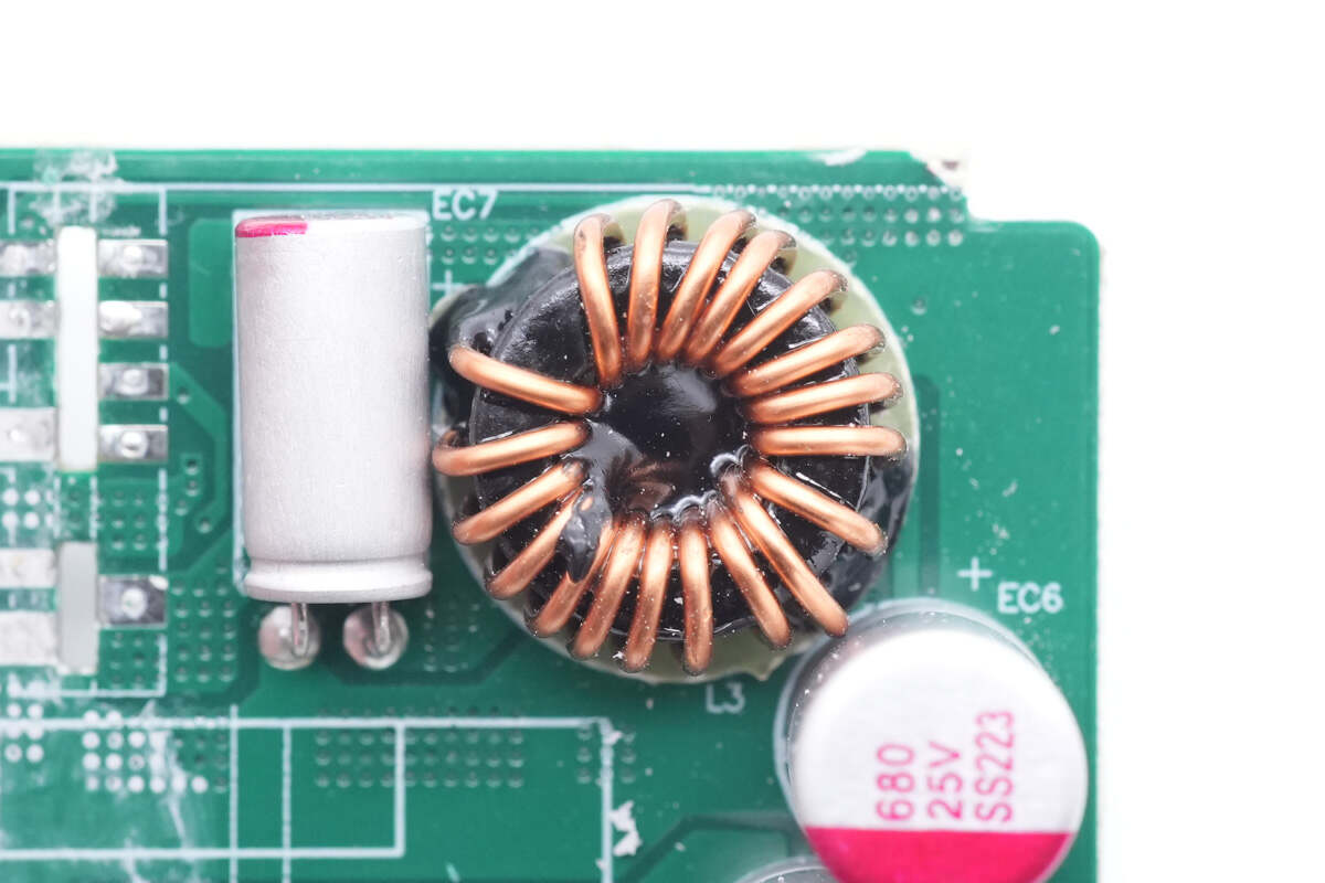 降压电感采用磁环绕制,底部采用电木板绝缘。