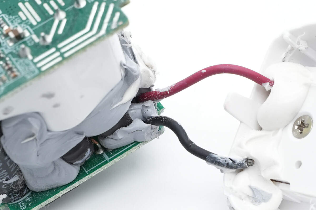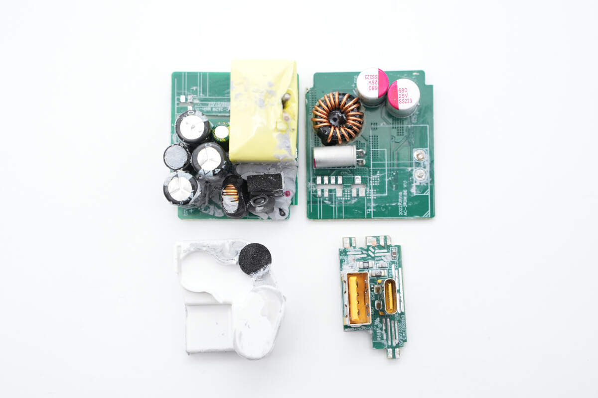 充电器内部PCBA模块采用多块PCB焊接组成,内部空间打胶固定成为一个整体。