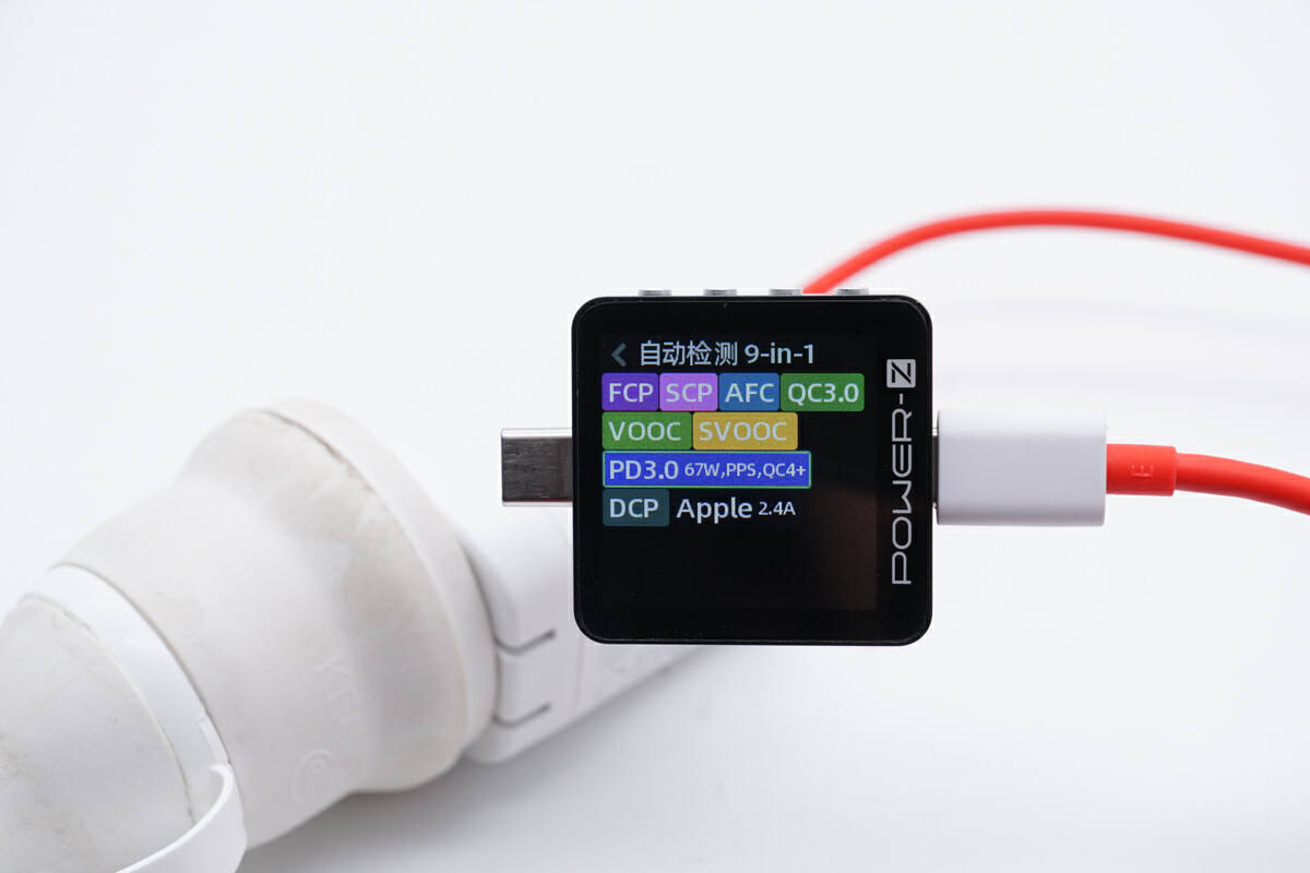 使用ChargerLAB POWER-Z KM003C测得USB-C口支持FCP、SCP、AFC、 QC3.0、VOOC、SuperVOOC、PD3.0、PPS、QC4+、DCP、Apple 2.4A充电协议。