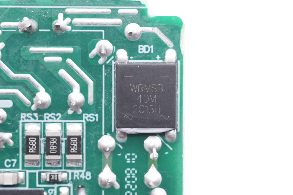 输入端WRMSB40M整流桥来自深圳市沃尔德实业有限公司,规格为4A 1000V。WRMSB40M这颗软桥通过较软的恢复曲线,比较平滑的关断特性,可以降低二极管结电容达到非常少的谐波振荡产生的效果。