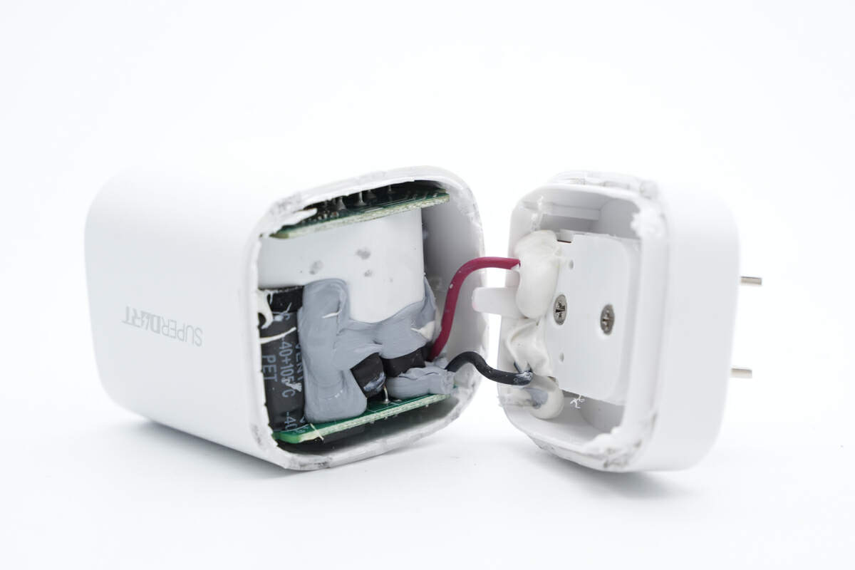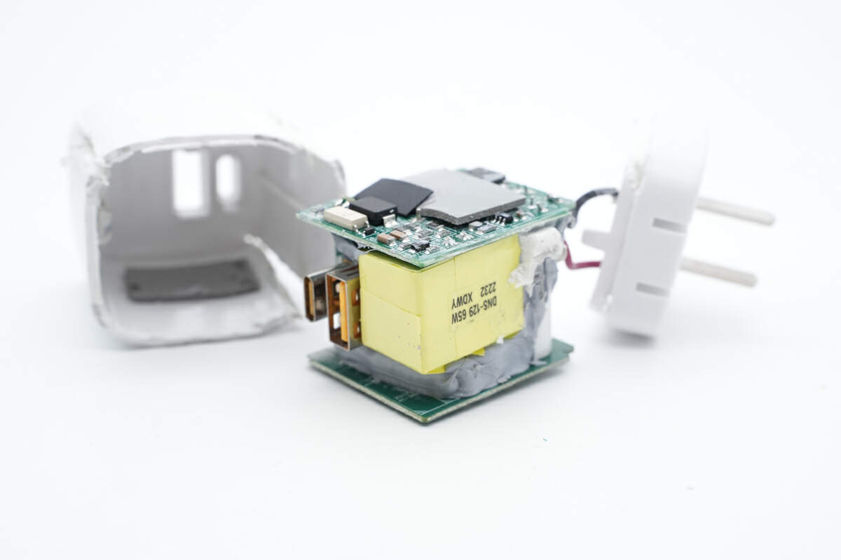 看完了真我这款67W氮化镓充电器的外观,尺寸和输出性能后,下面就进行拆解,看看内部的做工用料。