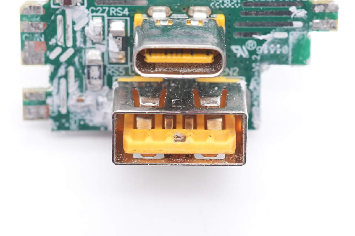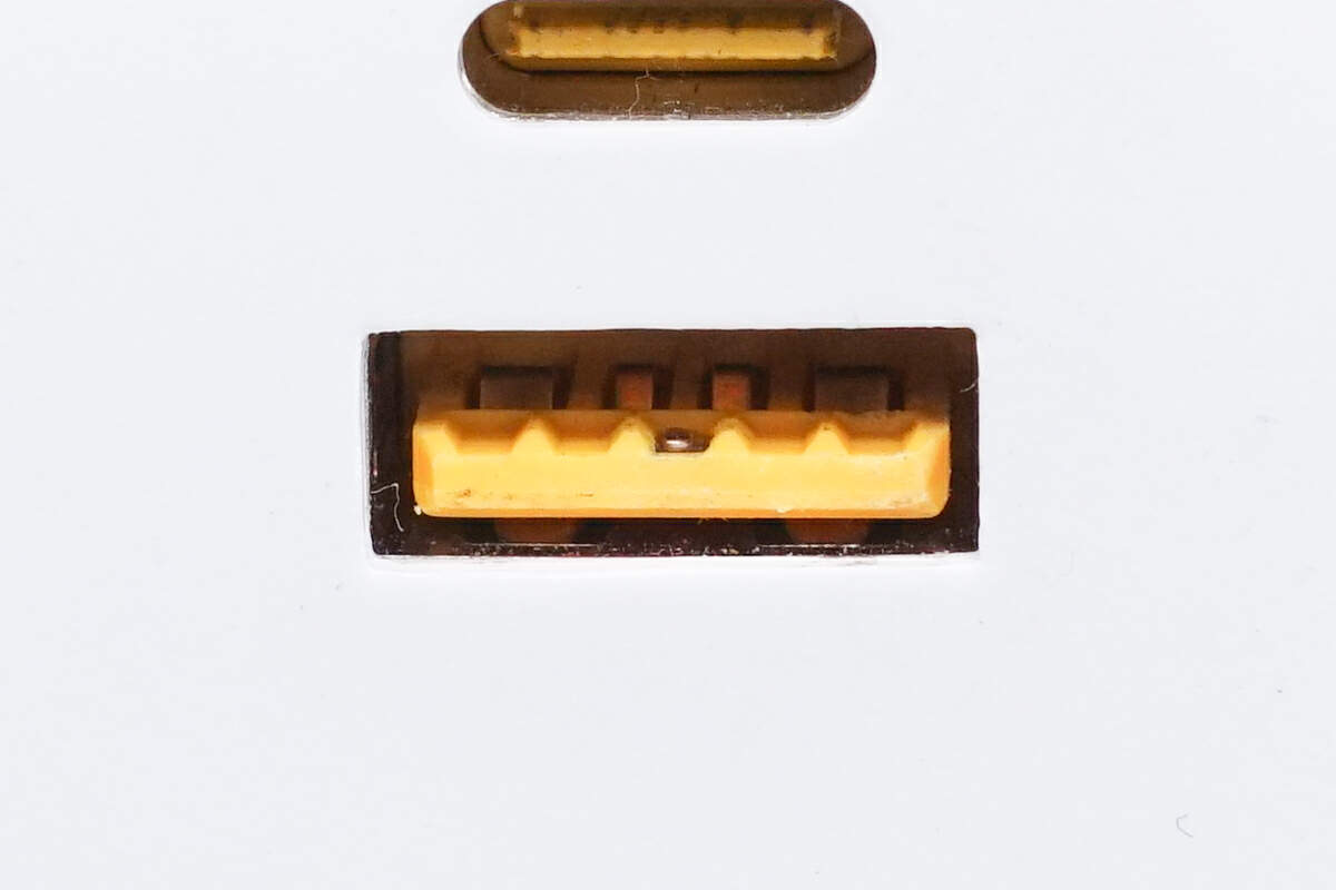 USB-A母座前端带有特殊触点,正负极加宽设计。