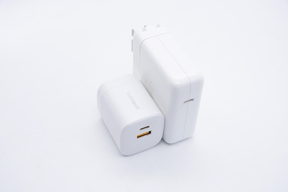 真我 67W双口充电器与苹果原装67W充电器相比,体积优势非常明显。