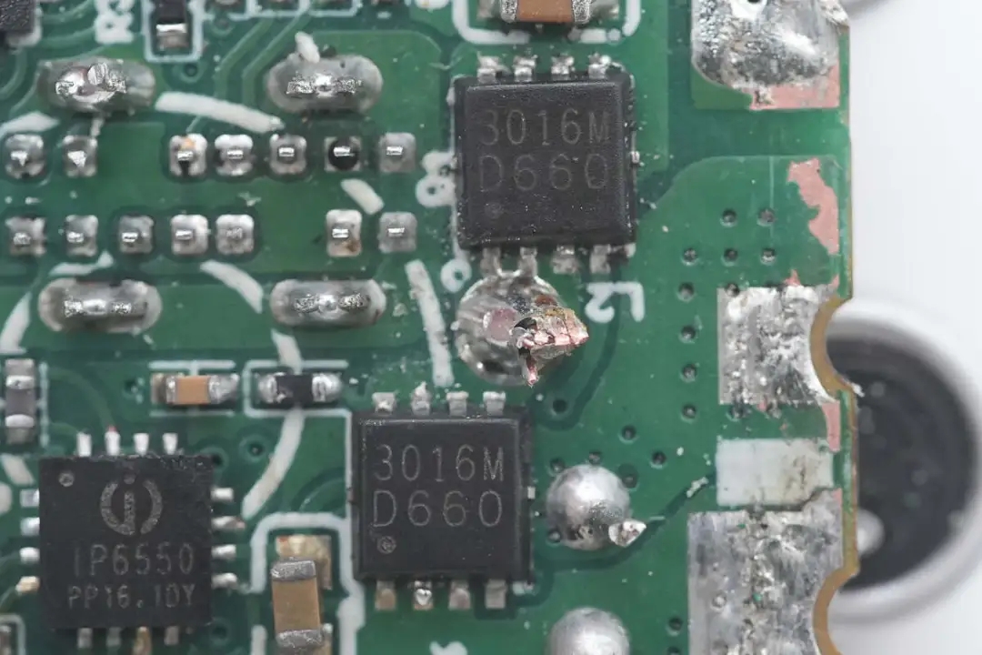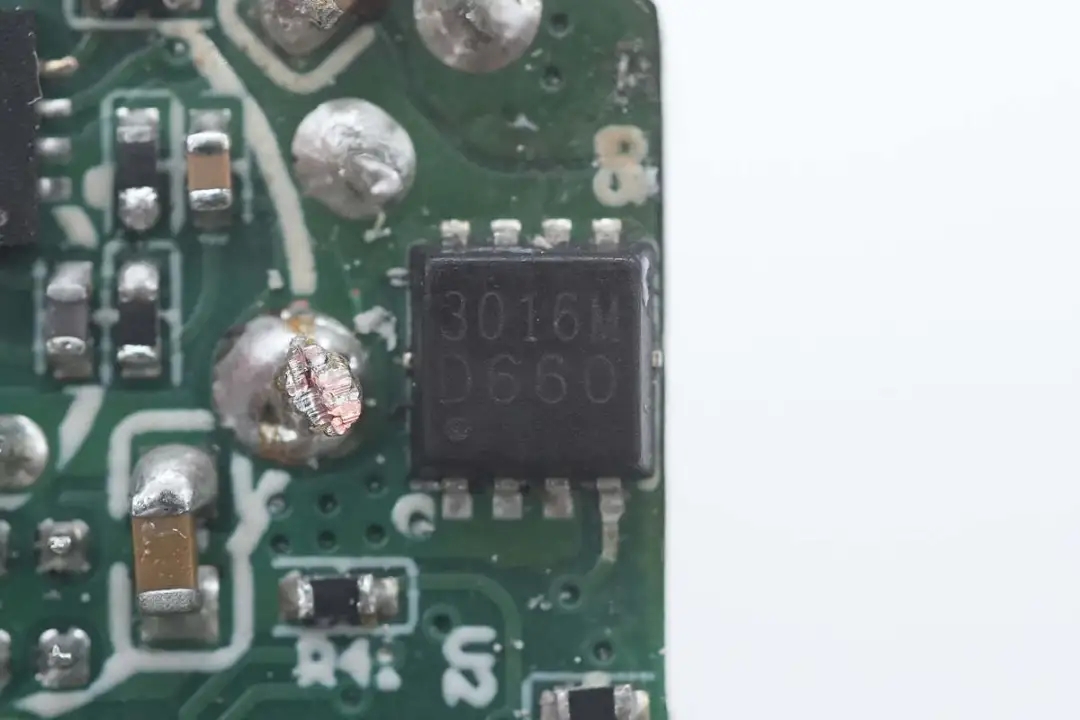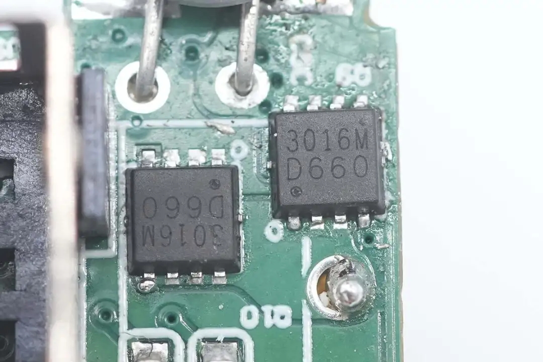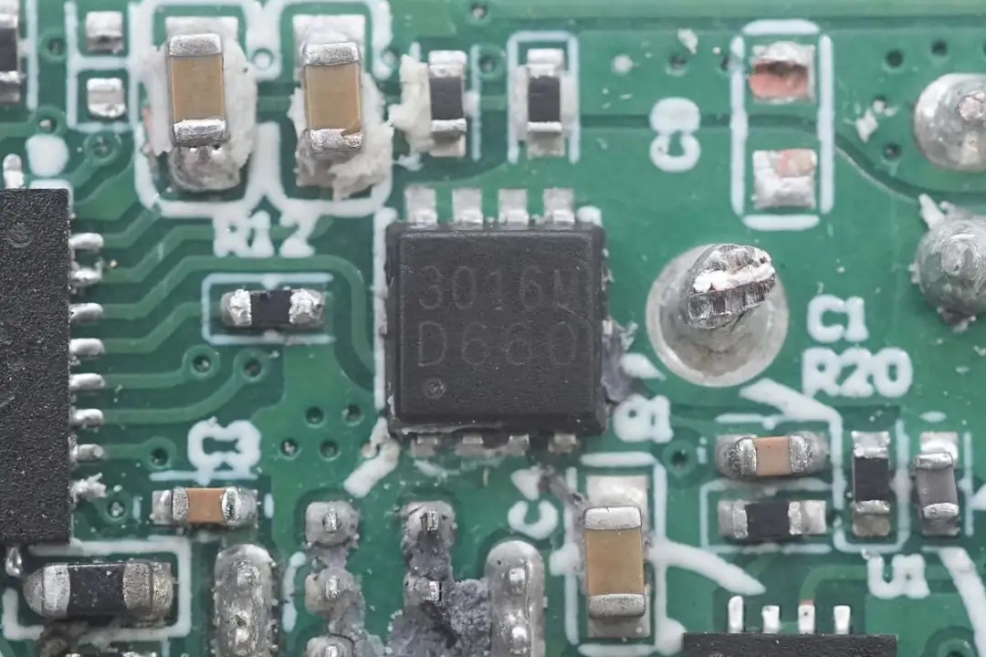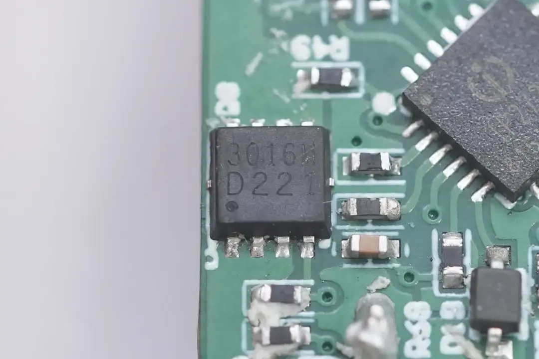 USB-A1口输出VBUS开关管特写,丝印3016M的MOS管。