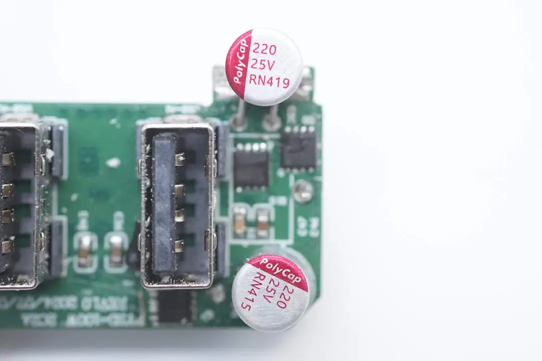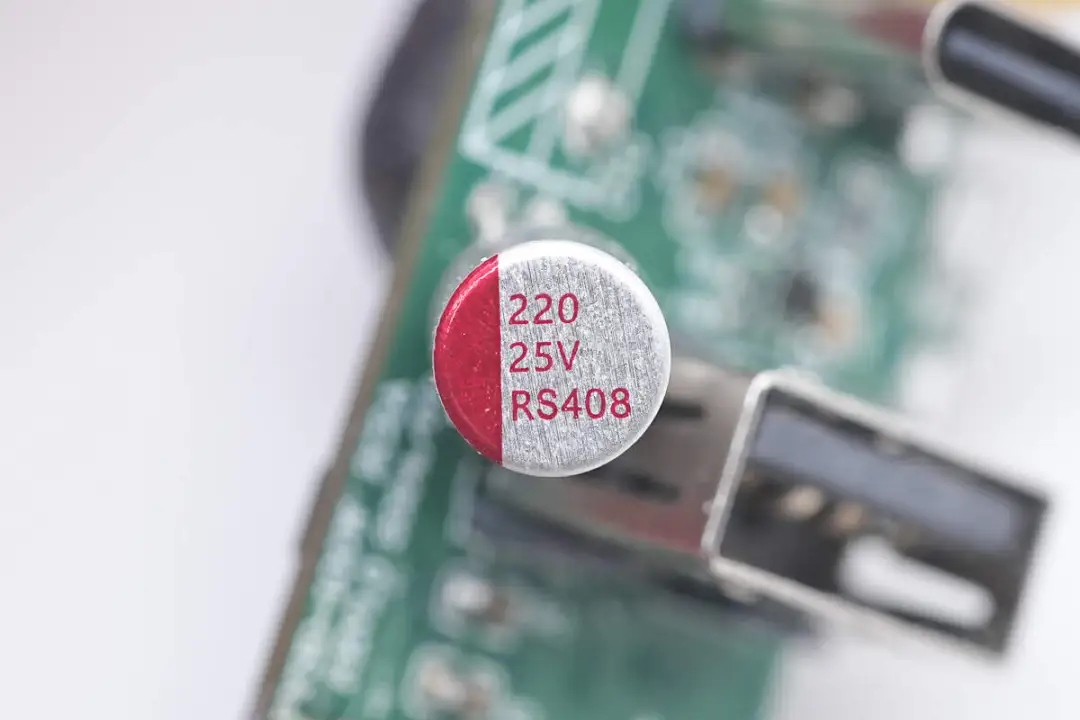 去掉胶套,电容来自PolyCap柏瑞凯,规格为25V1000μF。