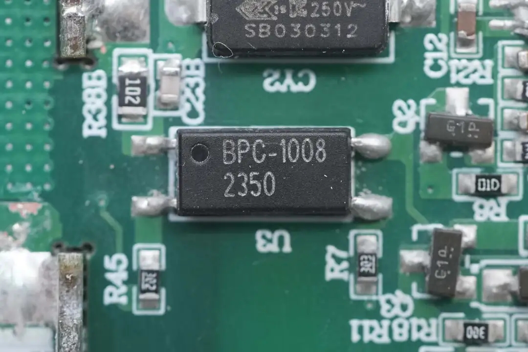 PCBA模块前端一览,输入小板背面仅设有四颗小电阻。