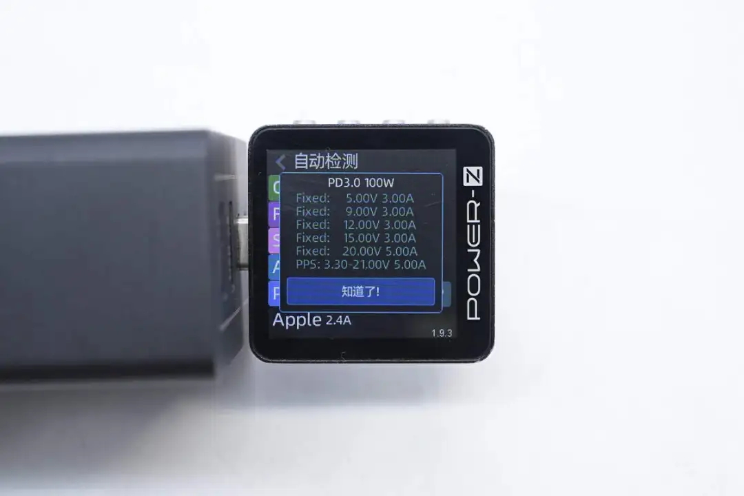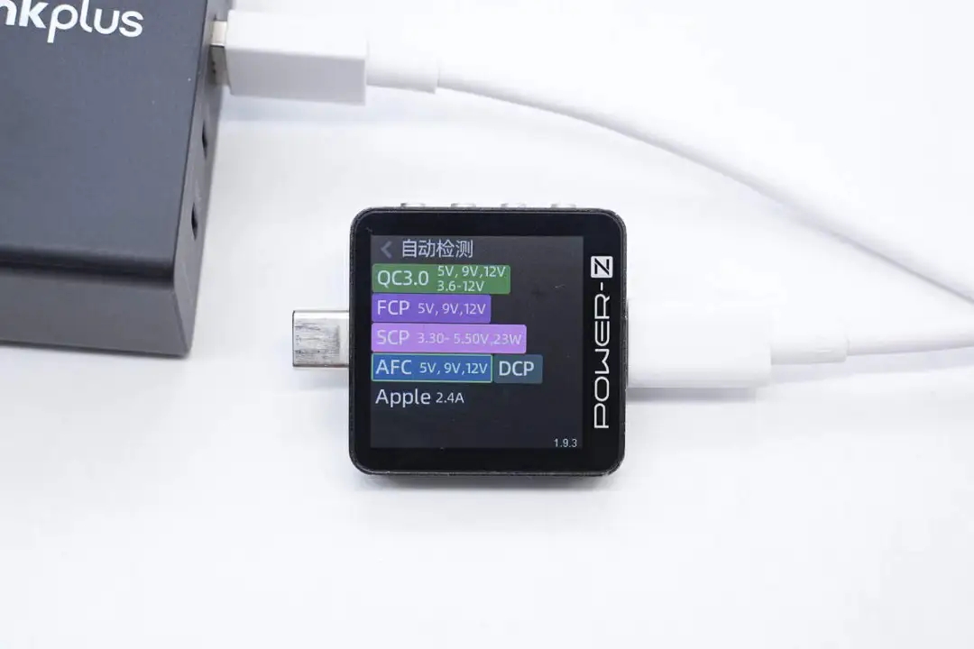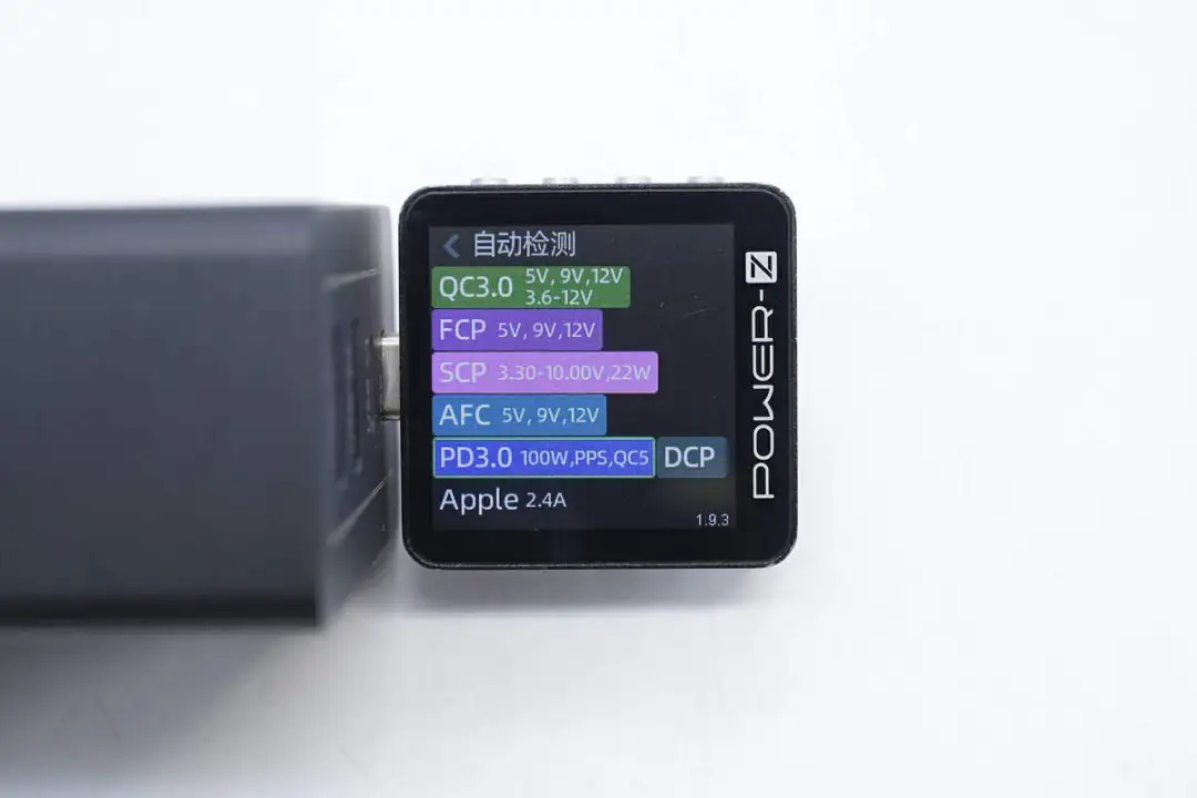 测得USB-A1口支持QC3.0、FCP、SCP、AFC、DCP、Apple 2.4A充电协议。