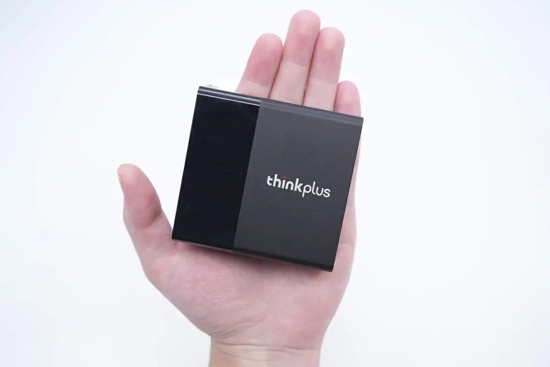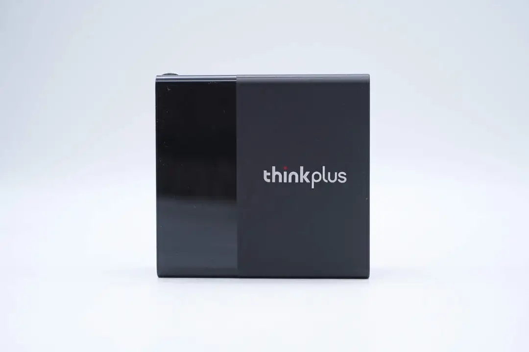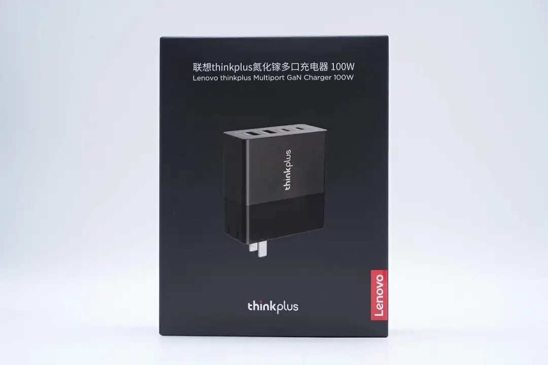 包装盒正面印有Lenovo、thinkplus品牌,产品名称和充电器外观图。