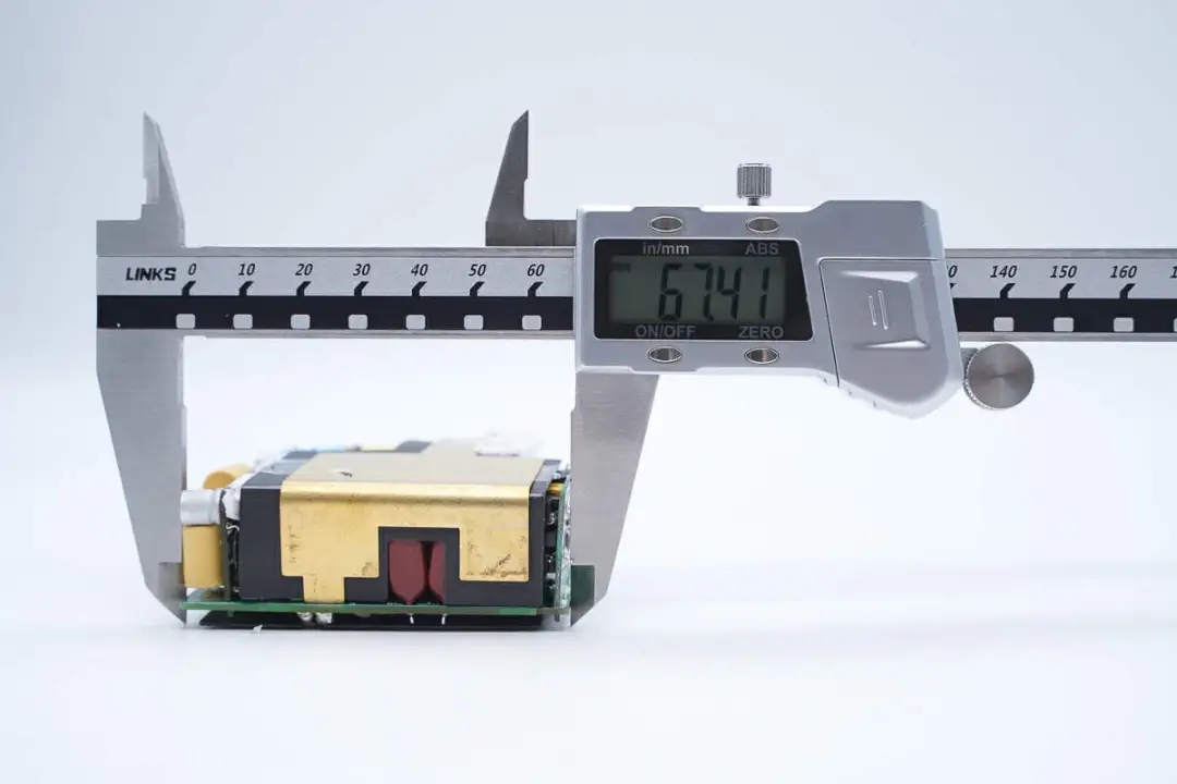 PCBA模块正面覆盖黄铜散热片,内侧有麦拉片进行隔离绝缘,保证安全。