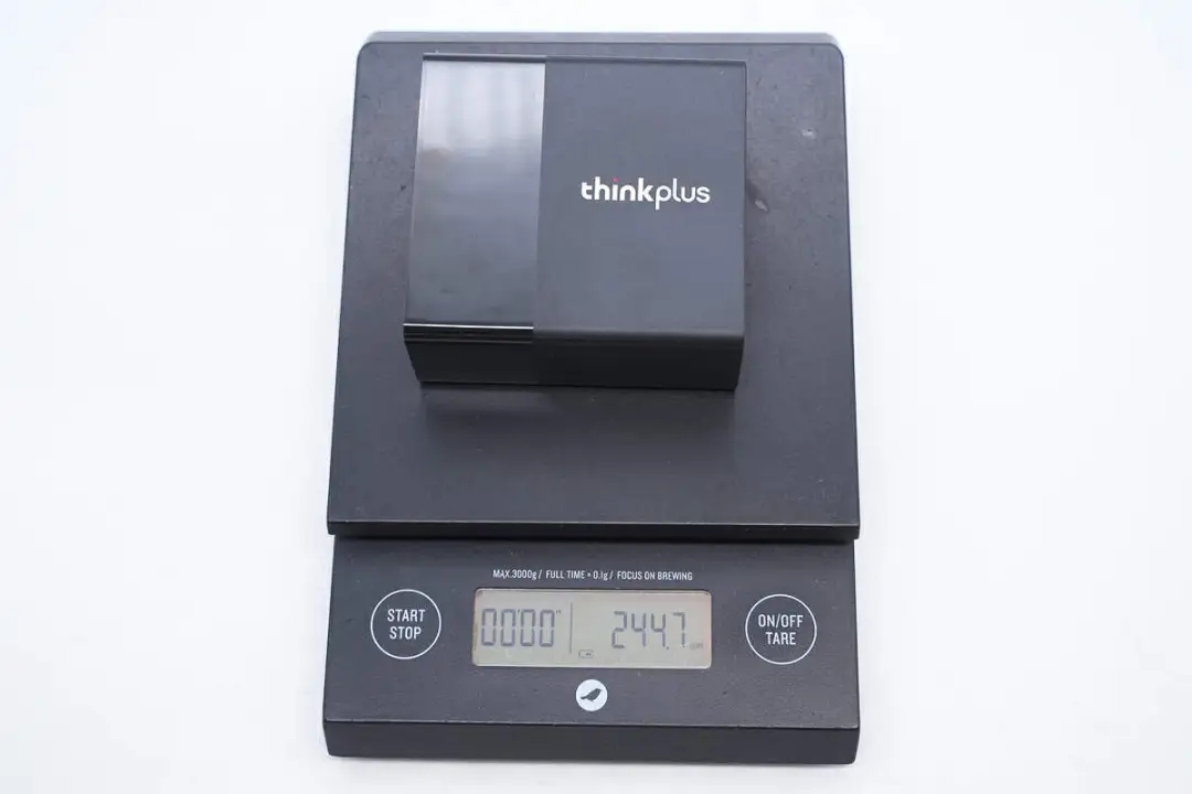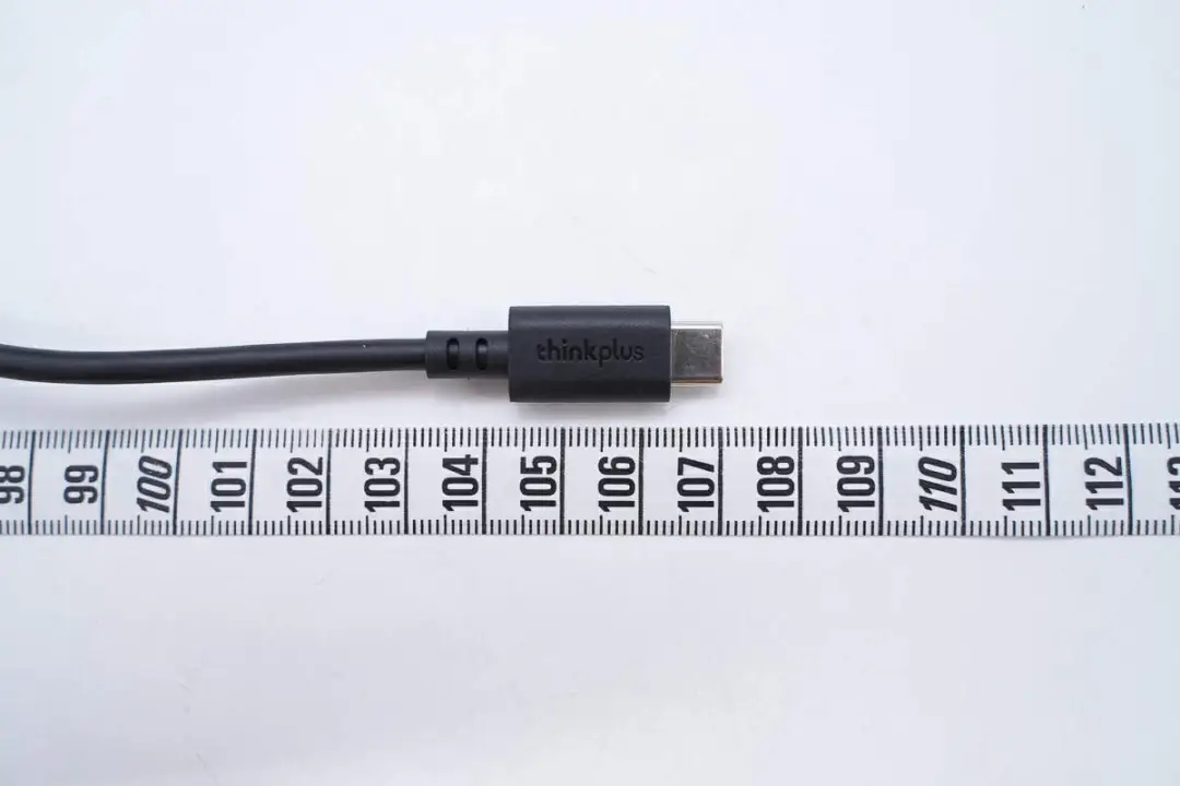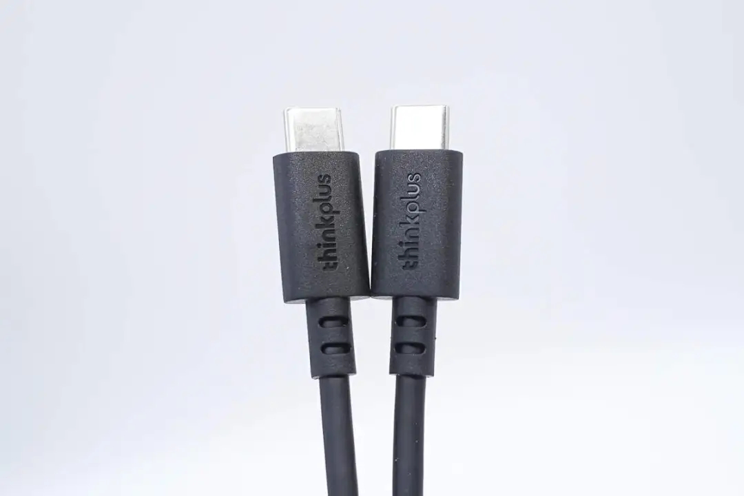 附带数据线为USB-C to USB-C线,线头外壳磨砂方便插拔,此外设计有thinkplus品牌。