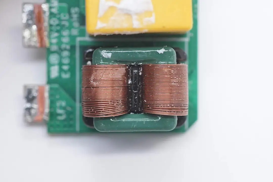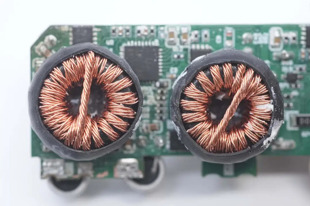 另一颗共模电感扁平铜带绕制,二级设计更好滤除EMI干扰。