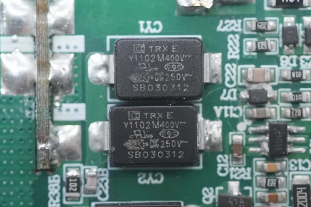 贴片Y电容来自四川特锐祥科技股份有限公司,具有体积小、重量轻等特色,非常适合应用于氮化镓快充这类高密度电源产品中。料号为TMY1102M。
