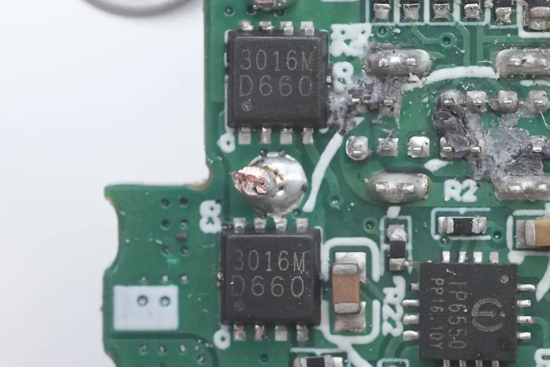 搭配的两颗同步降压开关管也是丝印3016M的MOS管。